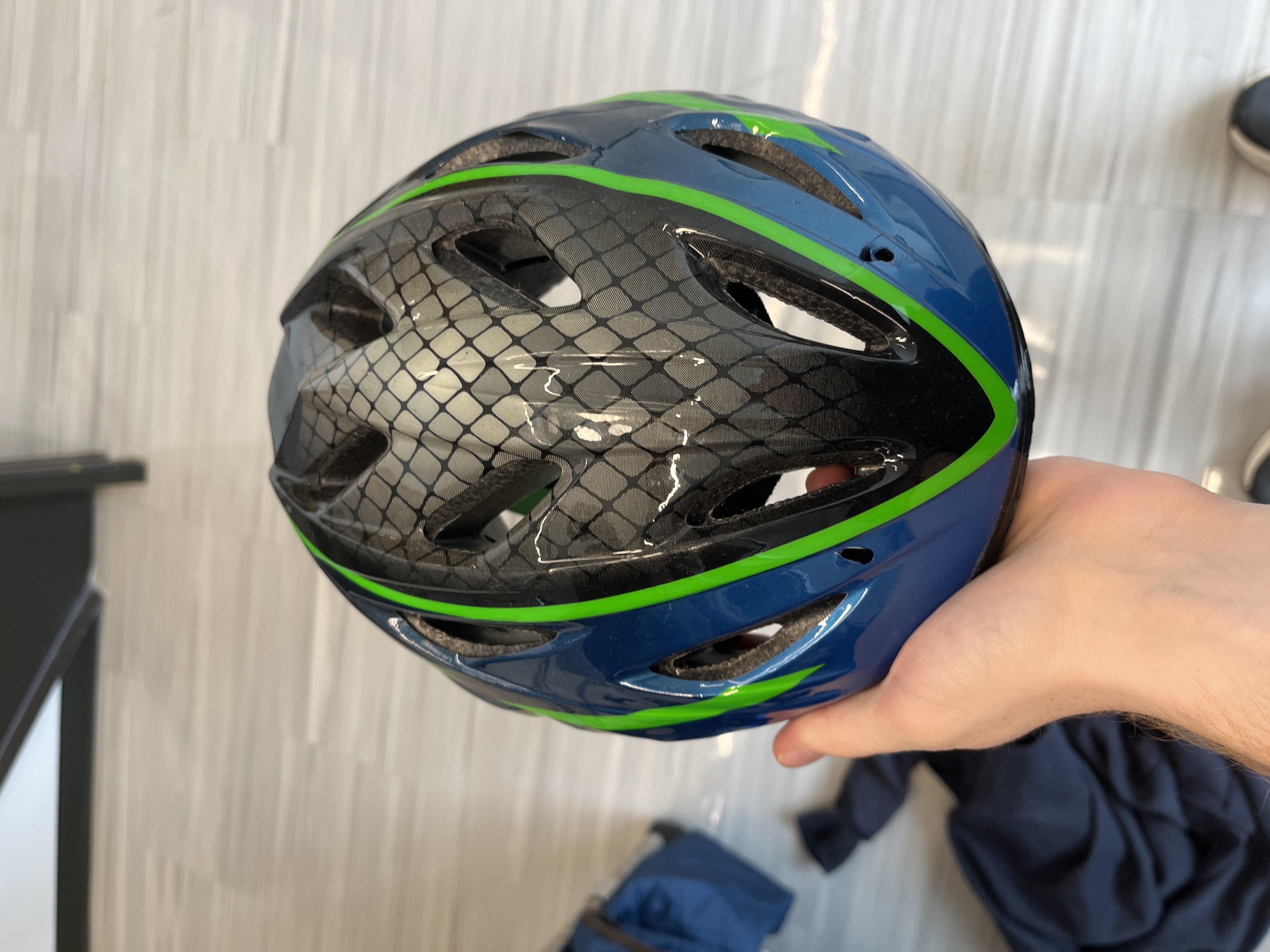 Blue and Green Bike Helmet